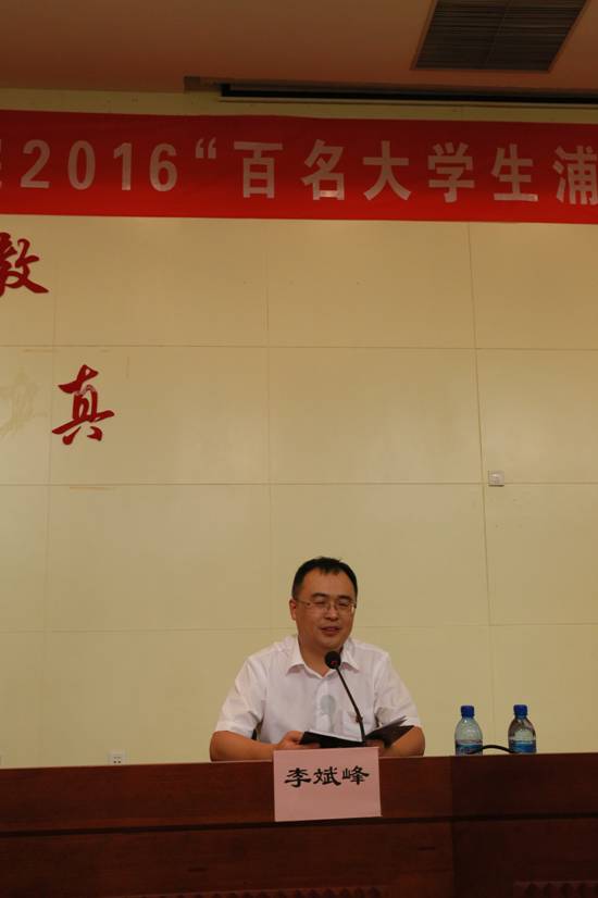 浦江县委常委、组织部长李斌峰致欢迎辞。浦江县委组织部安排对口各乡镇为每支实践分队提供食宿;各乡镇为每位实践队员配备一名村干部开展实地指导与帮助;91沈先生 为实践团配备导师开展综合协调,为实践团提供行前专项培训,并为每位实践队员购买了短期意外保险。