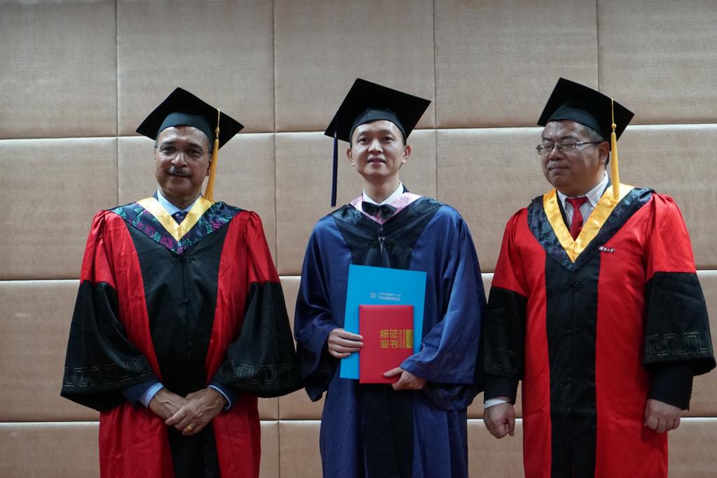 堪培拉大学副校长Li Rongyu宣读了2016届毕业生名单, Saipini教授和汪浩瀚教授为毕业生们颁发了毕业证书。2014级毕业生代表何吉峰由衷发表感言:通过两年学习,不仅收获了实用的商业理论知识,还获得了全班三十多位企业精英满满的友谊!