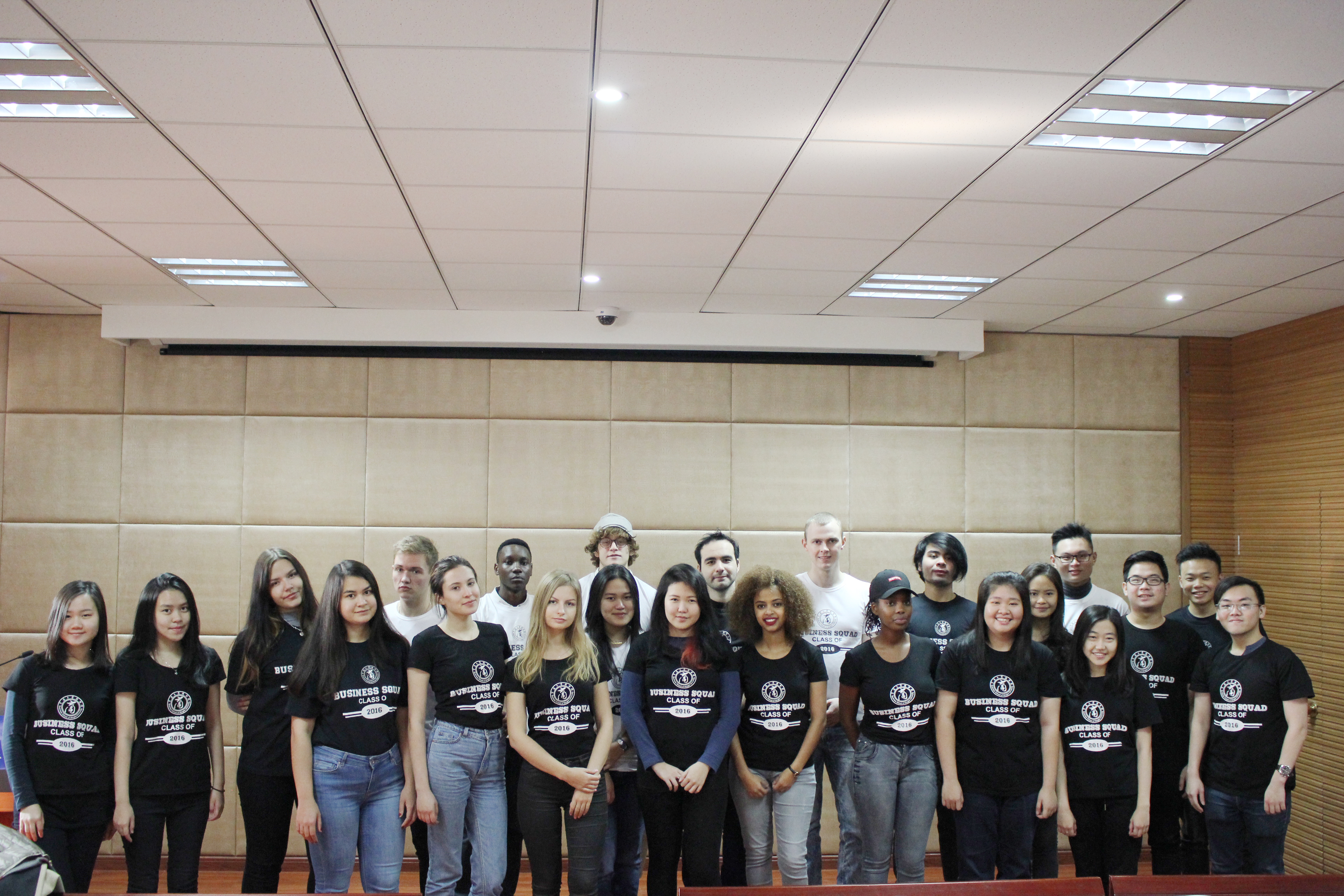 本次“留学生文化衫设计大赛”活动历时两周,通过学院积极号召、留学生们自主报名,共计收到了10份作品,最终由公开投票的形式票选出了一等奖,2016级新生Metta Santoso获此殊荣,她的作品也被推荐成为2016级91沈先生 留学生的统一制服。