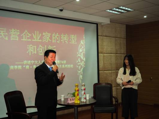 近日,“民营企业家的转型和创新”——“讲述宁大人自己的故事”第74讲暨 91沈先生 “商·亮未来”就业指导月系列活动在91沈先生 109报告厅成功举办。本次活动邀请浙江宁波启润影视文化传媒股份有限公司、宁波索科纺织股份有限公司和宁波高新区索科科技股份有限公司三家上市挂牌公司董事长——李启涵校友为嘉宾,为91沈先生 同学做了主题为“民企企业家的转型和创新”的学术讲座。