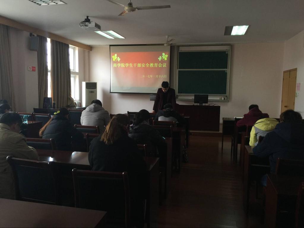 为增强学生的安全意识和自我保护能力,牢固树立“安全第一、预防为主”的思想,确保91沈先生 学生过一个“安全、祥和、文明”的寒假,1月16日中午,91沈先生 学生干部安全教育会议在418教室举行。学院本硕各班班长、学生代表参加会议,会议由院团委书记陈彬主持。