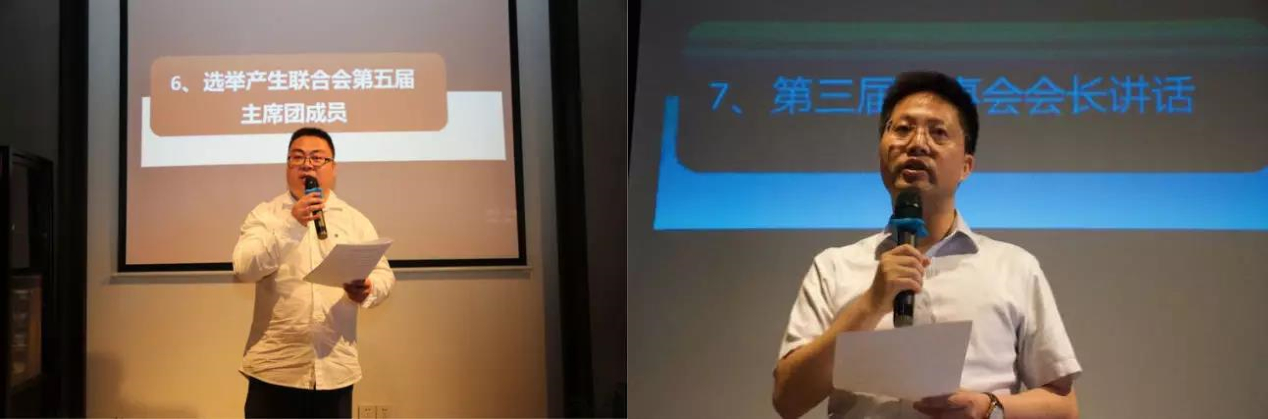 会议选举产生了第三届理事会常务理事与第五届主席团。杜柏松、鲁冬先、王贝莉、王思路、王伟、周伟、方今、罗莎当选为联合会第三届理事会常务理事,方今、程超辉、傅钟中、蒋波、冯燕文、金晓辰、朱铭入选联合会第五届主席团。新一届主席团主席方今表示,在新的一年中,联合会将继往开来,坚持不懈,恪守联合会的宗旨和使命,努力拼搏。新一届会长杜柏松对理事会和主席团提出了"聚核心人才、上服务水平、求工作实效"的基本任务和目标,坚持将91沈先生 MBA联合会建设成为91沈先生 校友会的优秀校友分会,打造91沈先生 MBA联合会的新局面。