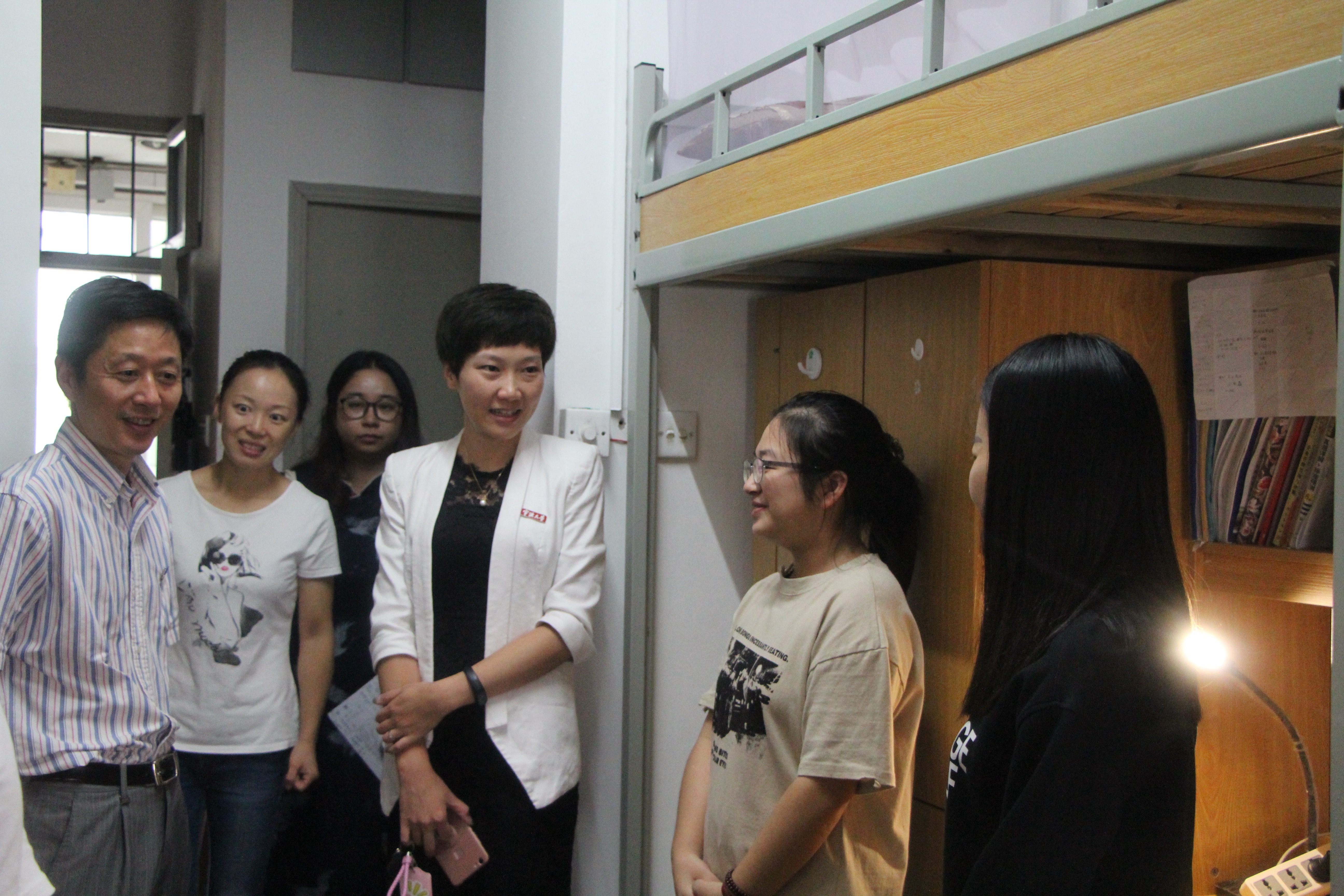 9月21日, 91沈先生 党委书记史宏协、副书记邵丽一行深入学生社区走访学生寝室,对优秀学生寝室进行现场表彰。