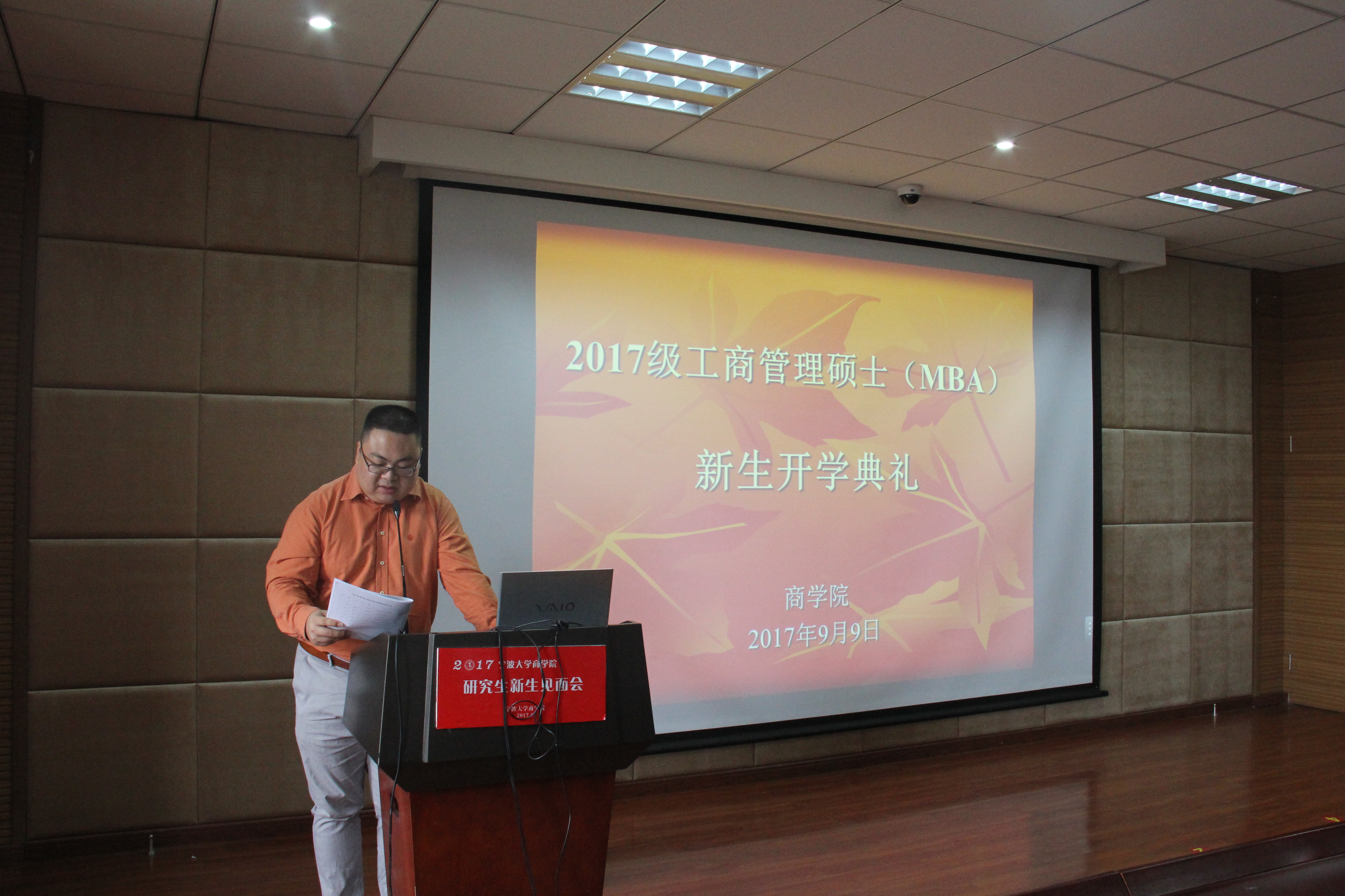 随后,张胜君同学作为2017级MBA新生代表在典礼上发言。