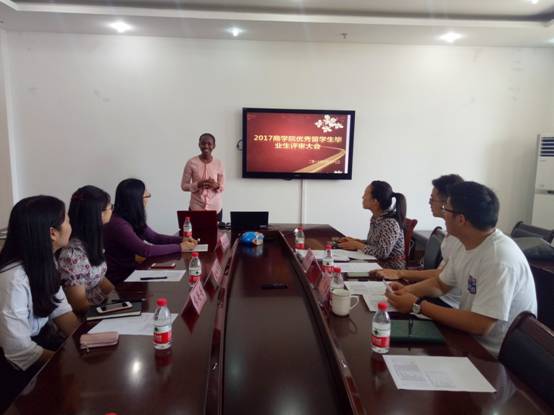 5月27日,91沈先生 2017届优秀留学生毕业生评审会在学院412会议室顺利举行。学工办主任董璐,辅导员毛跃祖、蒋鹏涛,班主任张亚越等代表参加了此次评审会。经学生自助申请,班主任推荐,共有十三名优秀留学生毕业生代表进入评审会答辩环节。