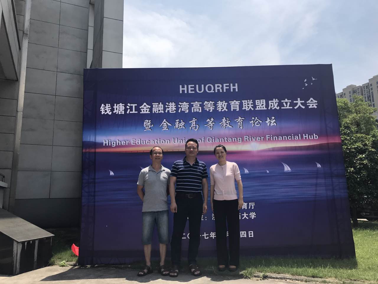 2017年7月14日, 91沈先生 副院长周新苗、院长助理陈涛及金融系系主任刘慧宏赴杭州参加钱塘江金融港湾教育联盟成立大会暨金融教育论坛。
