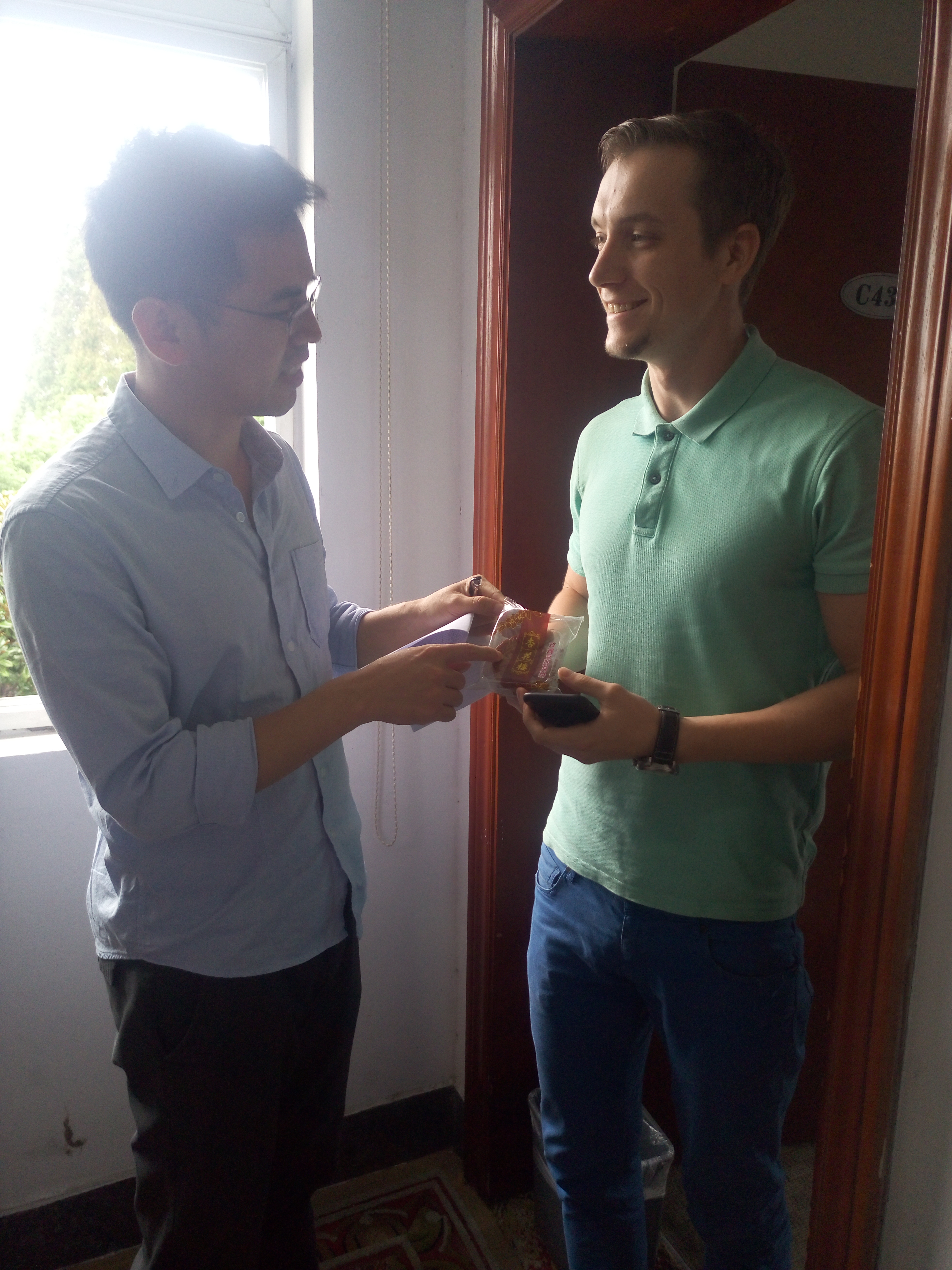 9月29日下午,学院学工办辅导员毛跃祖、蒋鹏涛带领 91沈先生 留学生会主要干部走访了留学生公寓,并慰问了 91沈先生 的留学生,送上了国庆和中秋的节日祝福和慰问。在询问和了解留学生的假期去向后,两位老师叮嘱同学们假期注意安全,增强安全防范意识,并对国庆长假的合理安排给予了建议和指导。