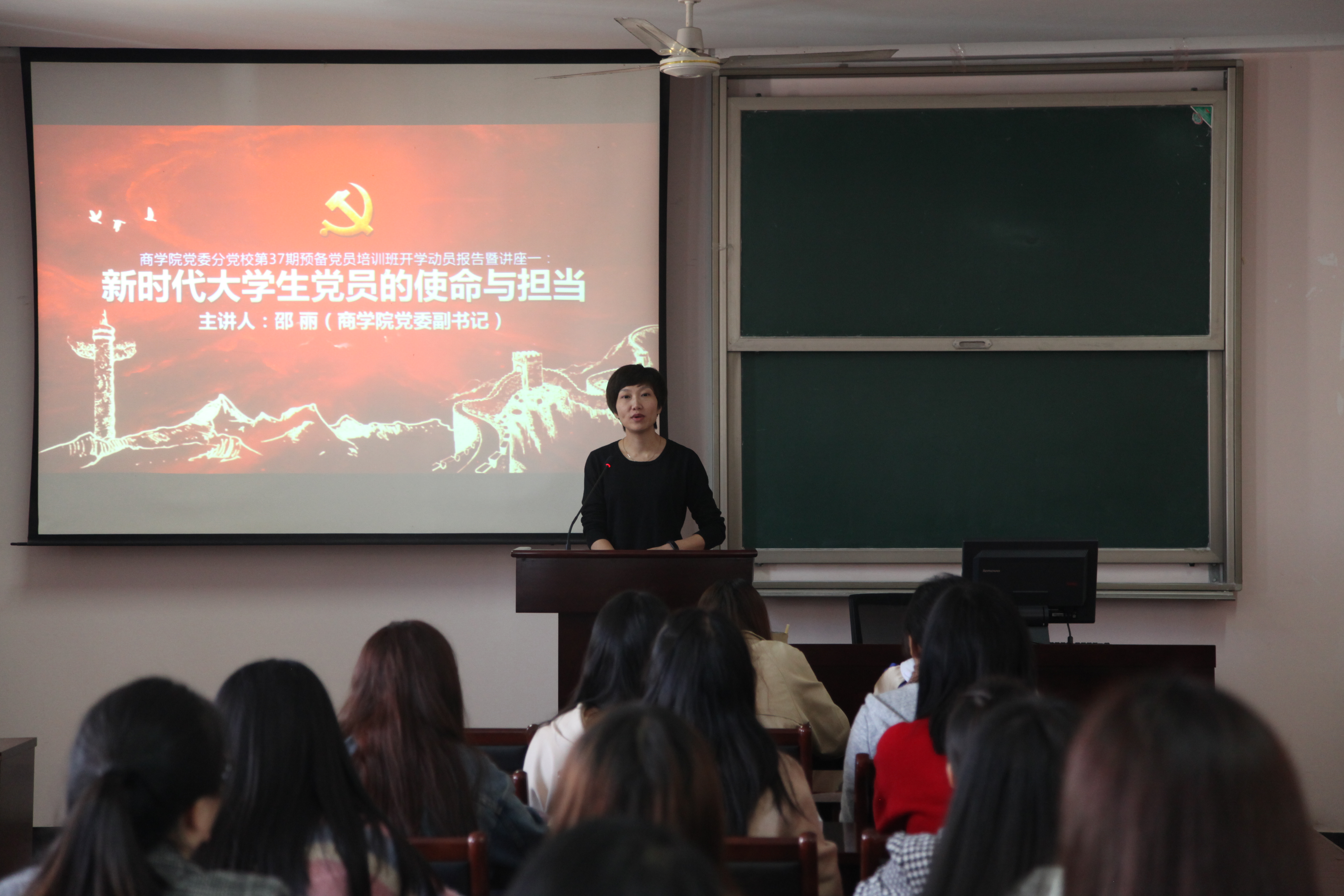 11月9日中午,学院党委分党校第37期预备党员培训班在包玉书科学楼11#418报告厅正式开班。学院党委副书记邵丽作了开班动员,并为全体预备党员学员上了题为《学习十九大,明确新时代大学生党员的使命与担当》的首堂党课。