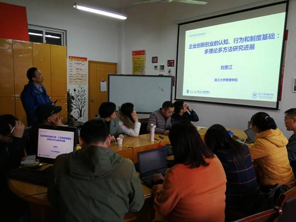 2017年11月22日下午13:00, 91沈先生 学术沙龙(2017年第33期)在11#408会议室举行。本期学术沙龙主讲人为浙江大学管理学院副教授、博士、硕士生导师刘景江,分享主题为“企业创新创业的认知、行为和制度基础:多理论多方法研究进展”。学术沙龙由企业管理研究所所长彭新敏教授主持,91沈先生 企业管理研究所及其他研究所教师、部分研究生参加了此次学术活动。
