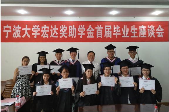 91沈先生 “宏达奖助学金”由 91沈先生 2002届MBA校友陆汉幸先生发起,自2015年设立起,17名来自不同年级专业的宁大学子的求学生涯得到了陆董事长的特殊关心和帮助。三年来,通过颁奖典礼、座谈会、企业参访、佳节问候、个别交流等互动形式,受助学生与捐赠方建立了浓厚的情感联系。如今,17名同学中有12名同学即将毕业离校,学院特别安排此次小型而温馨的座谈会,使同学们能利用这个机会表达自己的感激之情,也使同学们能带上宏达精神更加自信地踏上新的人生征程。