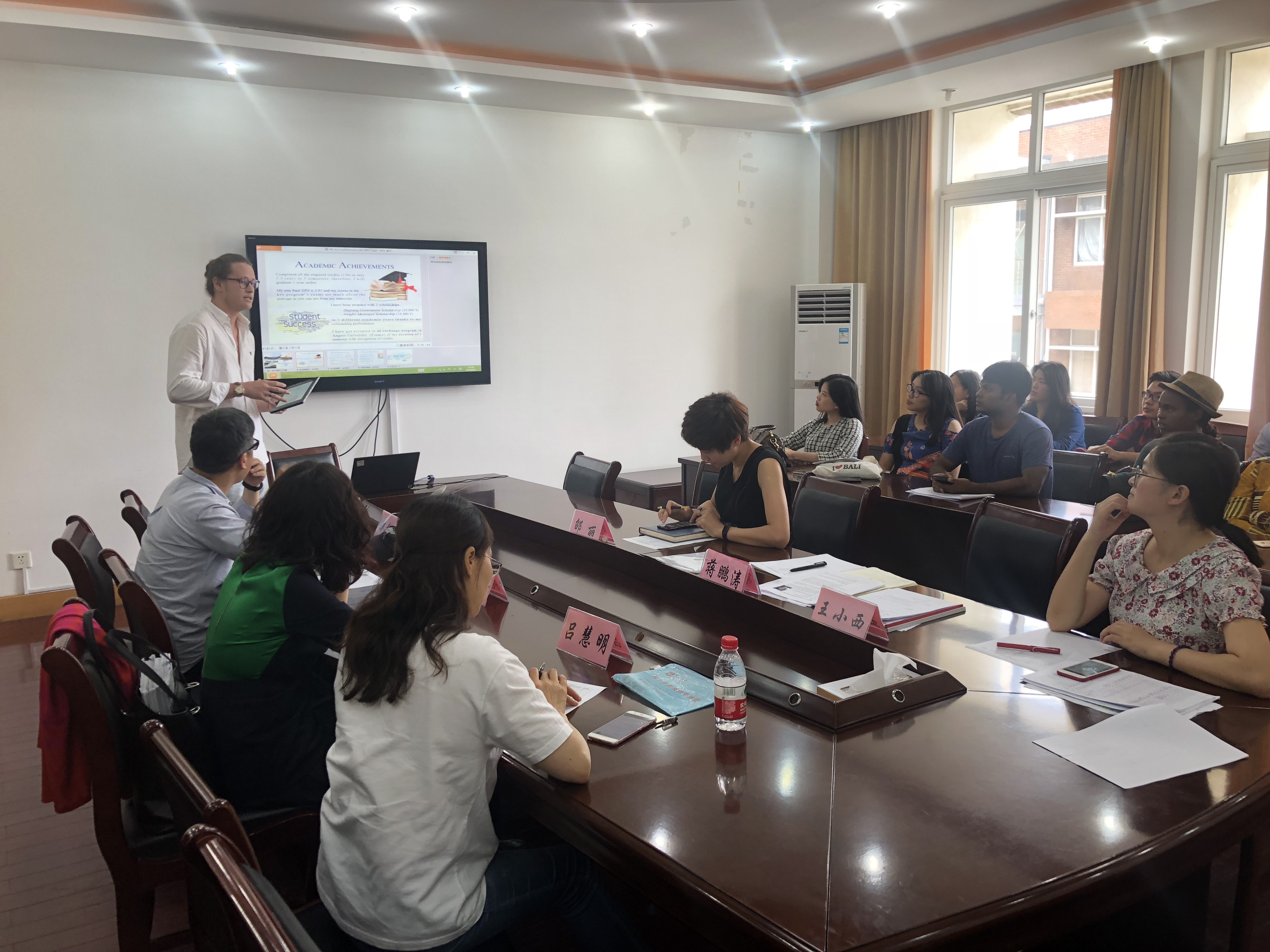 除了优异的学术表现,参加此次评审会的各个候选人充分表现出了自身的优势和特长。意大利留学生Lorenzo的学术成绩尤其突出,以91分的平均分提前完成学业并获得硕士研究生预录取;来自印度尼西亚的留学生Jessica在2017浙江省互联网+创新创业大赛留学生组中斩获金奖;来自孟加拉国的Hasan Mahedi精通中文,曾获中国汉语桥大赛三等奖;来自印度尼西亚的Lidya在校期间担任留学生志愿者协会主席,曾多次组织、协助 91沈先生 开展献血、支教等志愿活动。