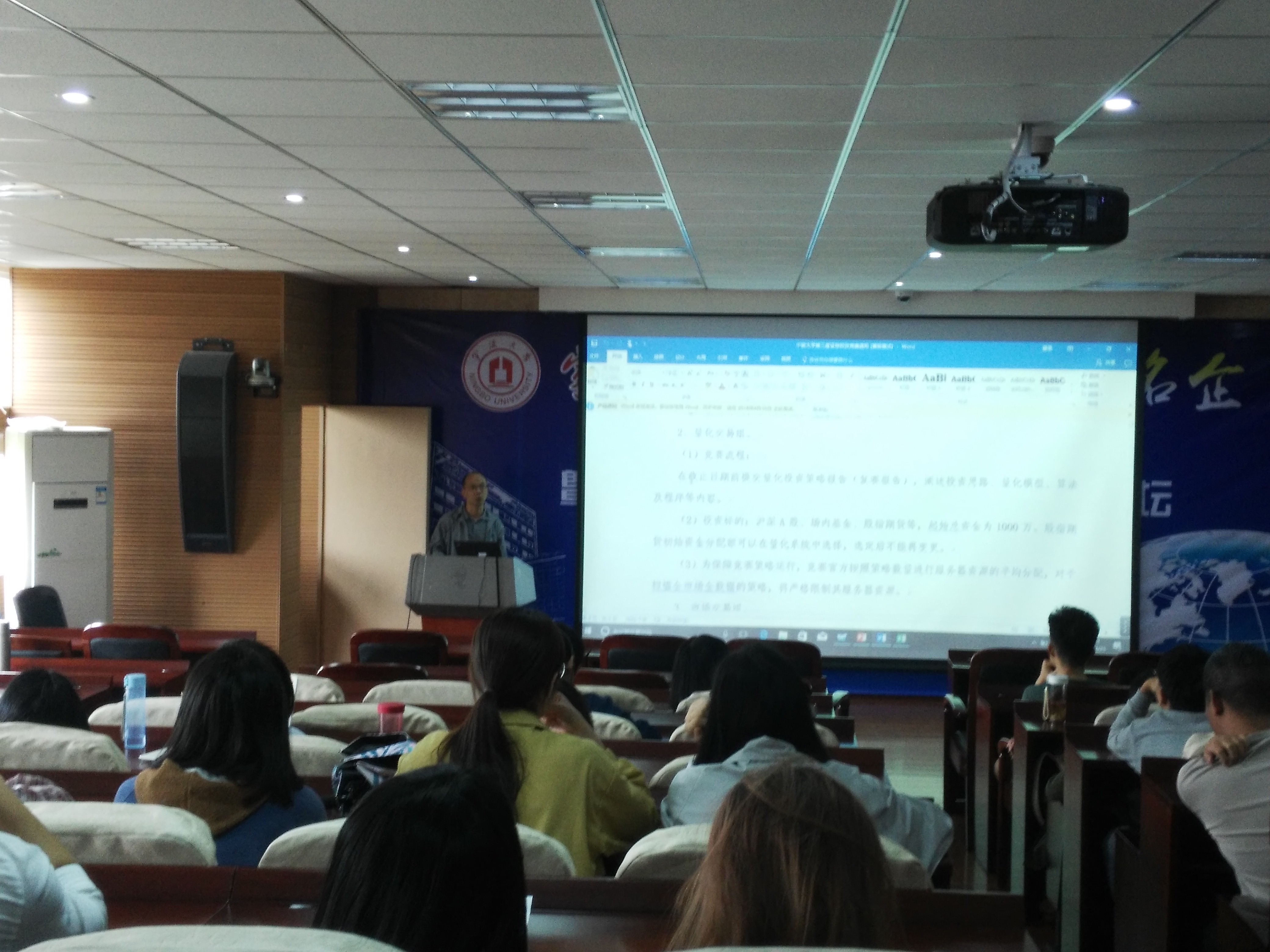 宣讲会上,刘慧宏老师、吴琛老师分别就竞赛规则解读、策略投资与量化投资的竞赛经验与同学们进行了交流。
