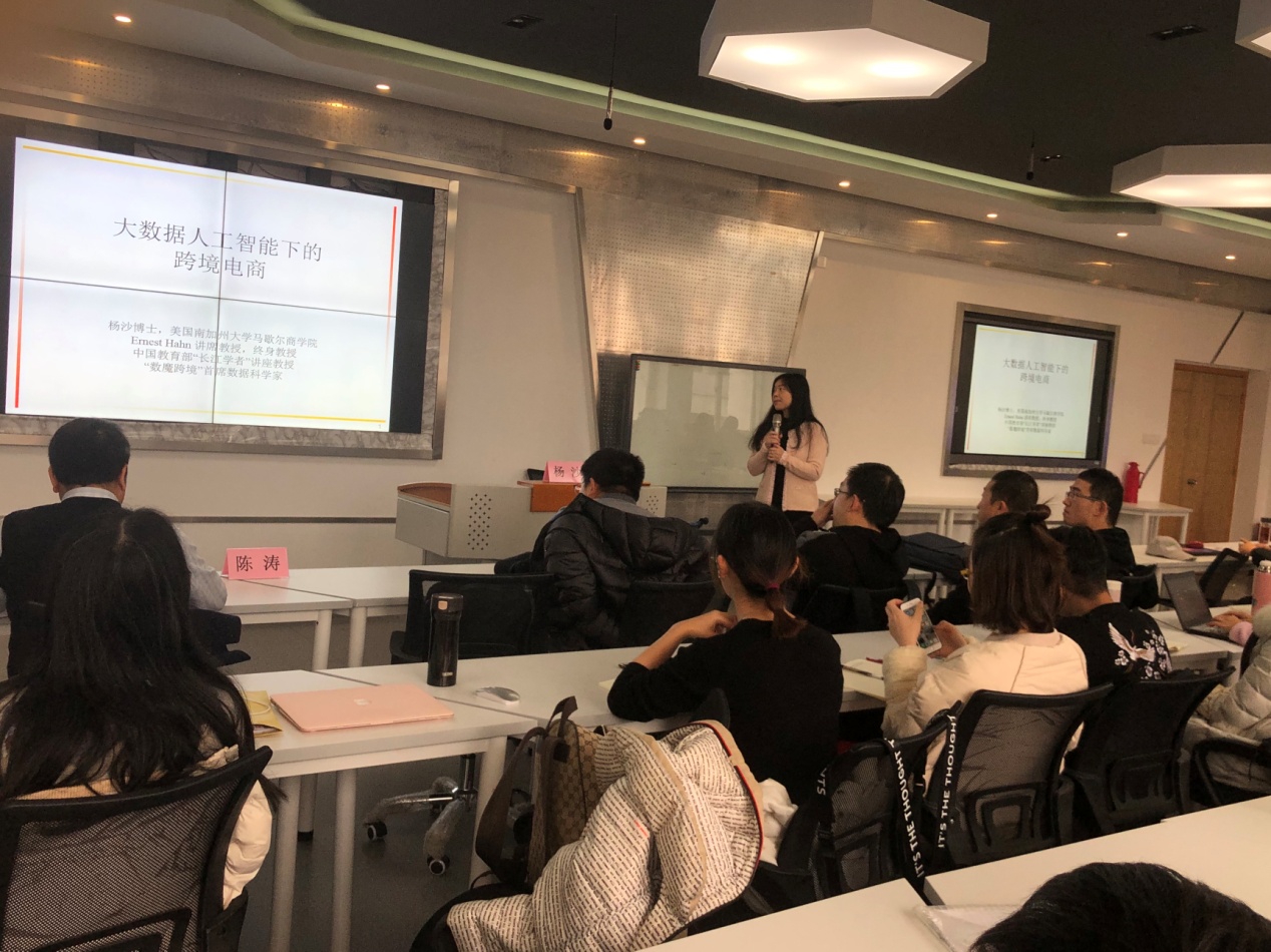 2018年12月14日上午,美国南加州大学马歇尔 91沈先生 Ernest Hahn讲习教授(终身教授)杨沙教授应邀在 91沈先生 414智慧教室做题为“大数据在智能营销领域的应用”的学术报告。本次学术会议由 91沈先生 主办, 91沈先生 陈涛副院长、教授主持。 91沈先生 工商管理系、信管系等部分老师和研究生参加了此次学术交流活动,认真聆听杨沙教授关于营销领域大数据研究的心得和经验分享。