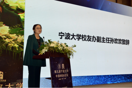 随后,91沈先生 校友办公室副主任孙欢欢上台致辞。她向嘉宾与校友们介绍了91沈先生 近年来的发展情况,学校在学科、学位点建设、高层次人才引进、高端科研创新平台建设和办学空间拓展等方面所取得的成绩。她指出,中澳MBA项目是91沈先生 对外合作办学的一张“金名片”,项目经过18年的发展,在造就具有全球视野又深谙中国实践的管理精英上取得了良好的口碑和效应。她对中澳MBA校友会给予高度评价,认为中澳MBA校友会是91沈先生 47个地方、行业校友组织中熠熠生辉的一颗明星,其广阔的视野、开放的姿态、团结向上的氛围和丰富高端的活动,为各界校友称道,校友们也通过这个平台,为事业发展注入强劲动力。她祝愿第九届中澳MBA论坛成功举办,进一步为校友们搭建相互学习、资源共享、对接合作、抱团发展的平台。