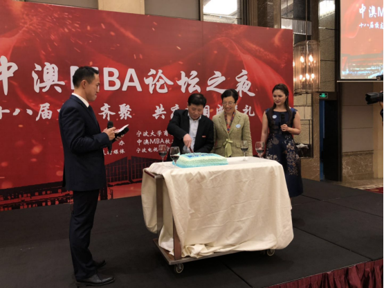 随后,嘉宾和校友们移步至隔壁大厅享用自助晚宴。校友会精心准备了庆祝中澳MBA项目十八岁成年礼的生日蛋糕。金院长和创始人邱教授一同登台分切生日蛋糕,并同全场校友们举杯祝福中澳MBA项目蒸蒸日上,越办越好。晚宴现场还为此次论坛举办做出贡献的校友和组织颁发了奖杯,进行了游戏抽奖。在众人的欢声笑语和举杯祝福声中,第九届91沈先生 中澳MBA论坛圆满地画上了句点。