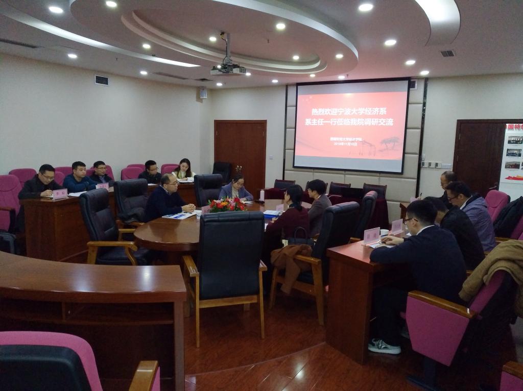 为了提升经济学专业人才培养水平和经济学类基础课程建设水平,经济系部分教师在系主任徐群芳的带领下于11月16日赴西南财经大学经济学院进行交流调研。徐群芳一行与西南财经大学经济学院邹副院长、胡副书记和经济学类基础课程负责人等就经济学本科专业的人才培养理念、招生就业、课程设置、管理制度、课程团队建设等方面进行了开放、充分的交流探讨。西南财经大学是国内财经类知名高校,经济学院设有经济学(国家经济学基础人才培养基地班)1个本科专业,其政治经济学是四川省普通高校首批省级重点学科、国家精品课程、国家精品资源共享课;政治经济学教学团队被评为国家级教学团队。此次交流调研使我们受益良多,不仅加深了对西南财经大学经济学院,特别是有关经济学本科人才培养和课程建设的具体管理制度和保障措施的了解,而且使我们进一步认识到了自身在相关方面存在的不足,明确了今后努力的方向,并为我们今后创新人才培养和课程建设改革提供了一定的指导与借鉴作用。