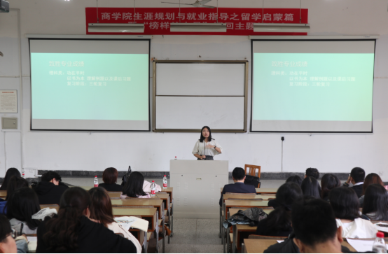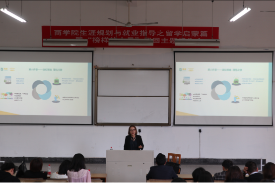今日, 91沈先生 生涯规划与就业指导留学启蒙之“榜样的力量”活动,在91沈先生 包氏教学楼四号阶梯教室成功举办,共计180余位商院各年级学生参加了本次活动。此次活动邀请了15级优秀学生代表吴金红同学、知名留学导师徐娇老师和赴美实习实践项目指导霍老师三位嘉宾,他们分别从学生、海外大学和海外企业三个维度出发,为同学们系统科学地介绍了留学相关知识。