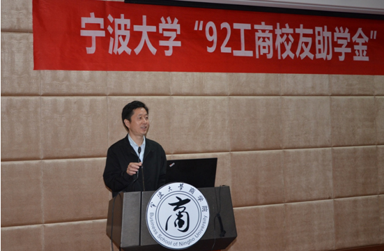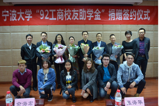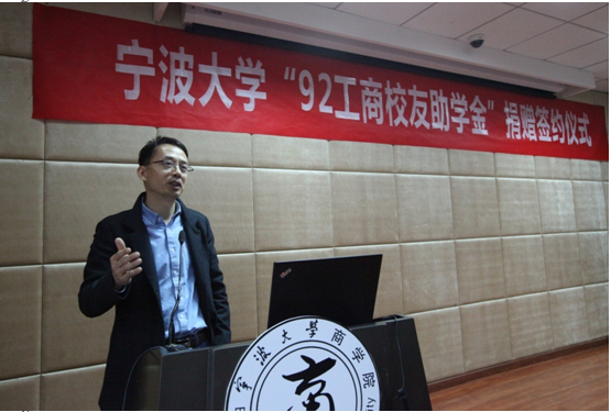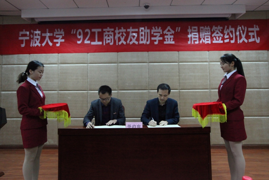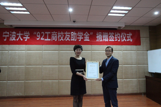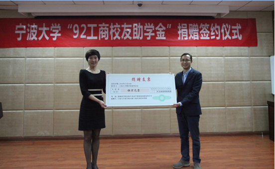 签约仪式在在91沈先生 发展联络处处长助理张海华代表91沈先生 教育发展基金会与校友代表马益波学长签订协议的那刻拉开帷幕,随后校友代表张春雷学长向学院捐赠了支票,学院代表邵丽副书记给捐赠方颁发了捐赠证书。就“情系母校、传承校友精神,鼓励宁大学子认真读书读好书”为主题,校友代表俞海宏学长发表了讲话,传达了他对母校的感恩之情,传递了对学弟、学妹的谆谆教诲。