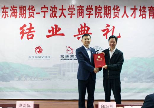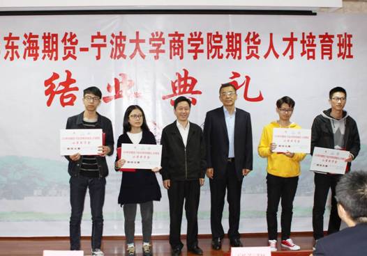 这一人才培养模式也受到了各方领导高度重视和关注。宁波市证券期货业协会秘书长俞烽、东海期货有限责任公司副总经理邱海翔、期权与国际业务部副总经理宋鹏、宁波营业部总经理宋盈杰和91沈先生 党委书记史宏协、党委副书记邵丽、院长助理朱一鸿、金融系主任刘慧宏等共同出席了结业典礼。