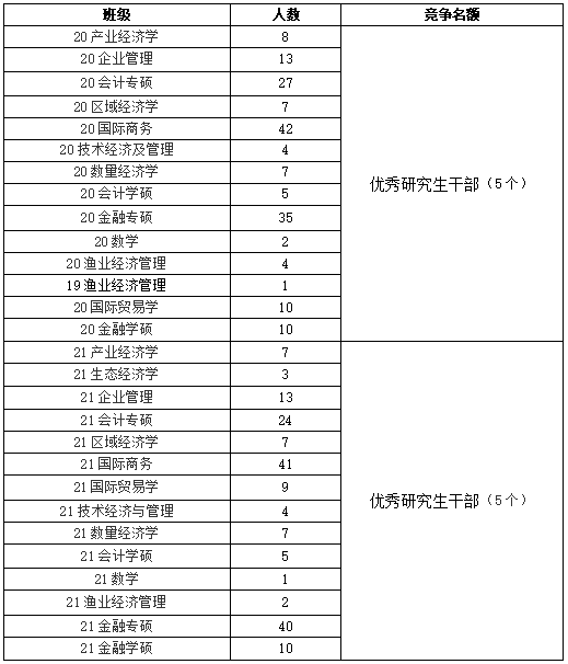 2.优秀研究生干部:评奖范围为二、三年级研究生,本次评选优秀研究生干部10名。