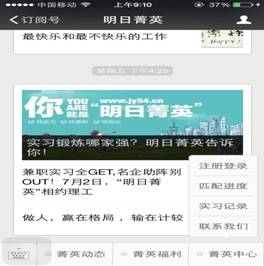 “明日菁英”,以实习赢得实力,以创业创赢未来,从这里,放飞职场的梦想。了解更多,请登陆“明日菁英”官网(www.jy54.cn) 或加微信公众号(明日菁英)。