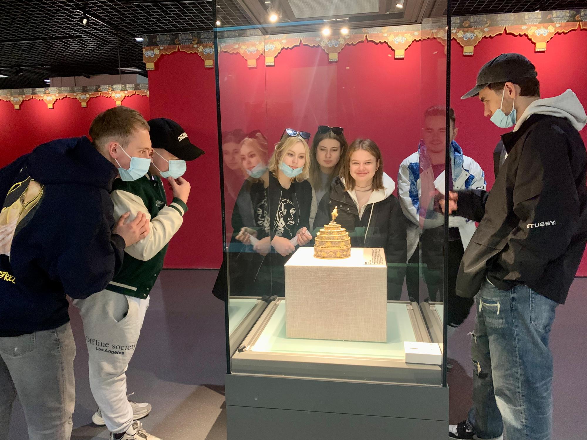 过不多久,师生一行抵达宁波博物馆。俄罗斯同学井然有序地配合现场管理人员进行入馆登记,随后开始游览宁波博物馆。