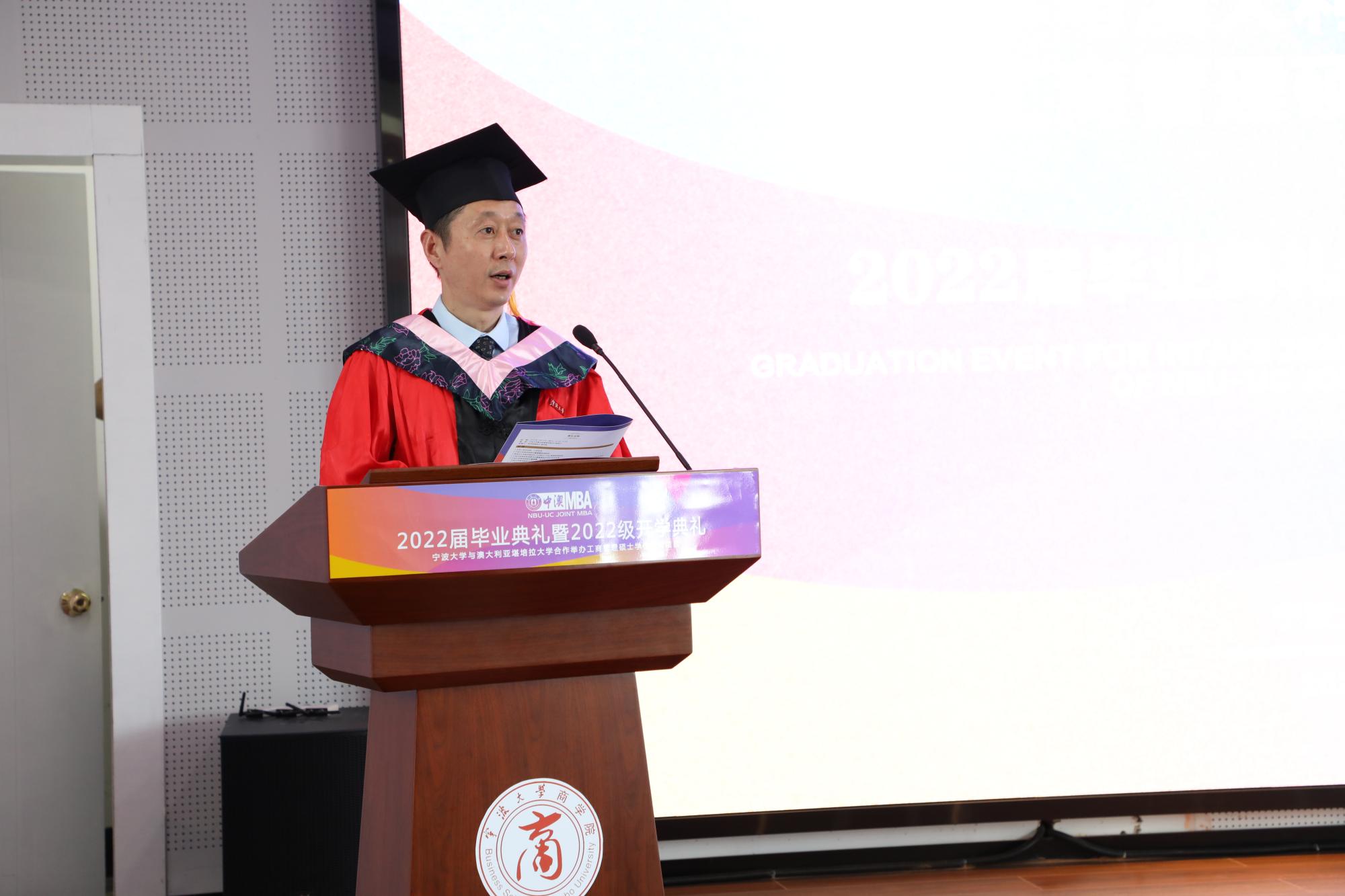 10月15日中午,91沈先生 中澳MBA2022届毕业典礼暨2022级开学典礼在 91沈先生 五楼报告厅隆重举行。受疫情影响,2022届31名毕业生中26人到场参加了典礼,2022级新生59人中近40人到场。91沈先生 金祥荣院长、史宏协书记、盛沛锋副院长,项目任课教师及项目管理团队等出席了此次典礼。典礼由盛沛锋副院长主持。