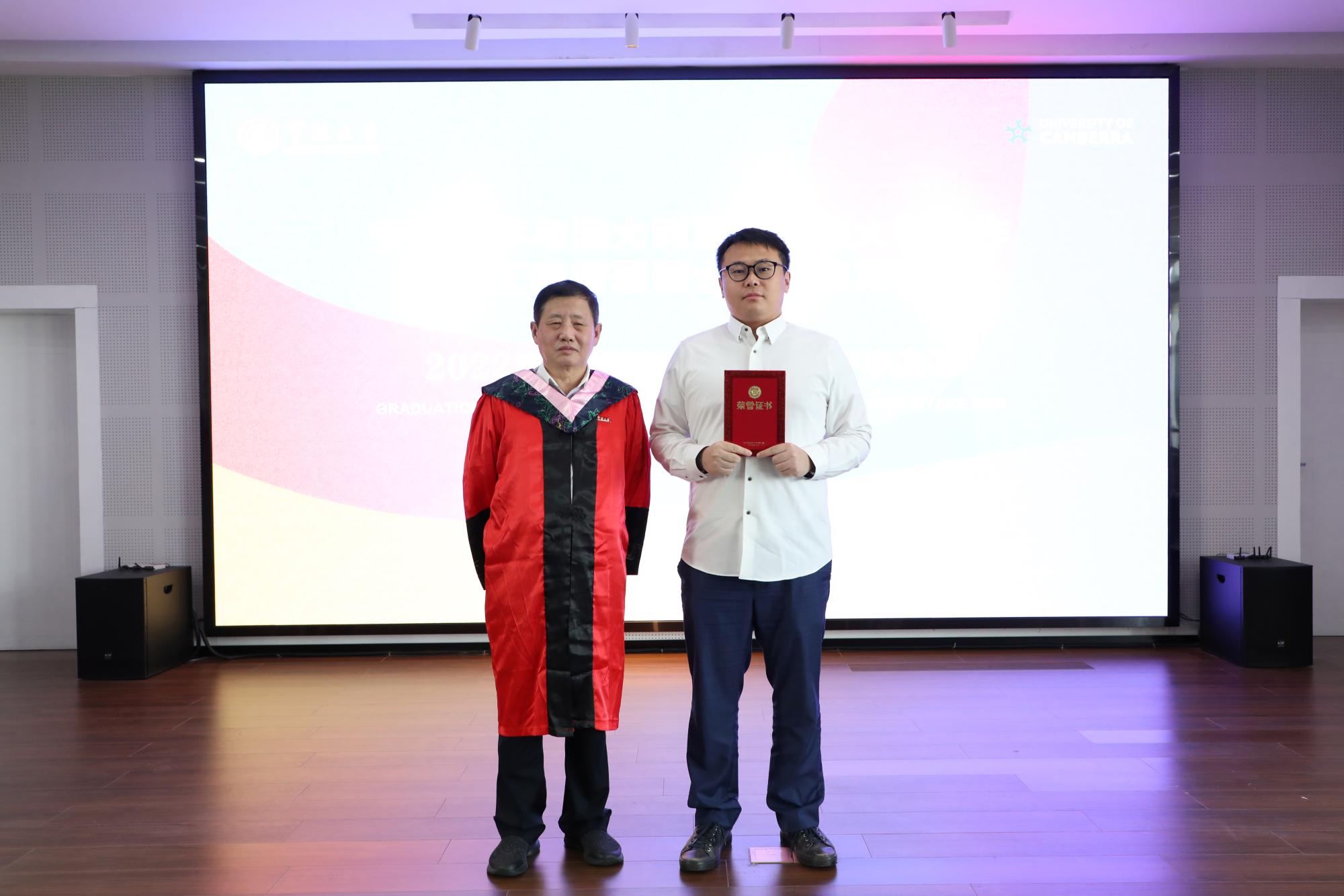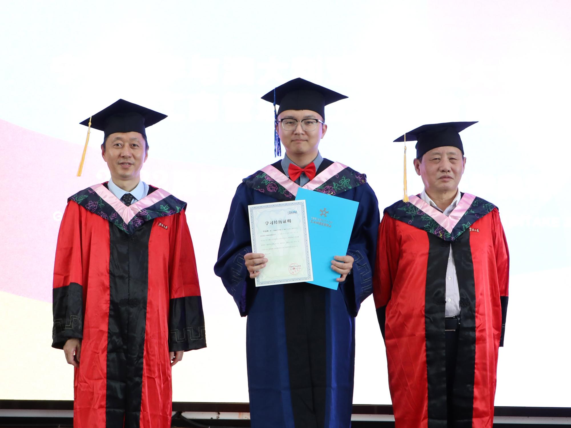 接着,学院党委书记史宏协宣布2022届毕业生名单,院长和书记分别为毕业生颁发了澳大利亚堪培拉大学的工商管理硕士学位证书和91沈先生 学习经历证明。